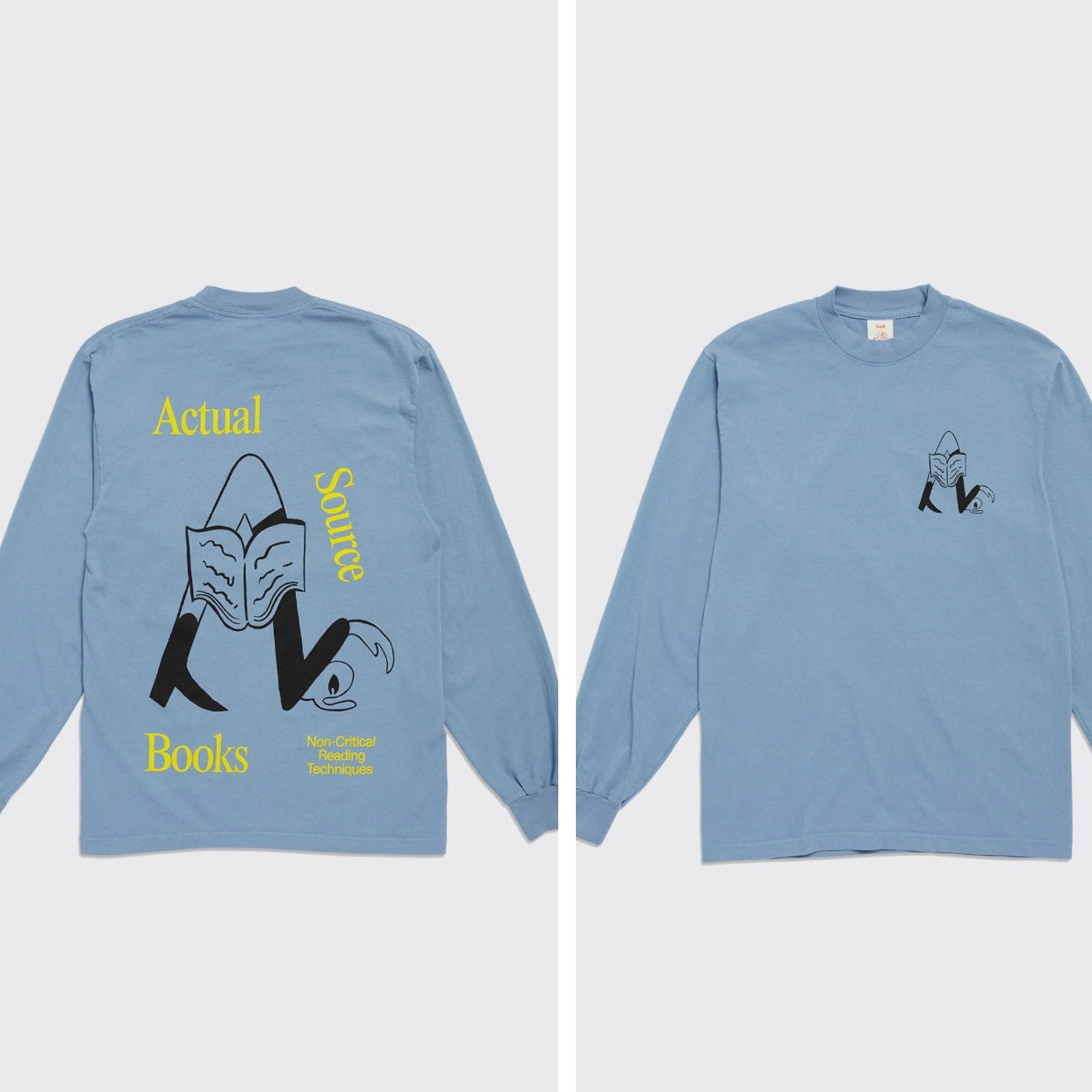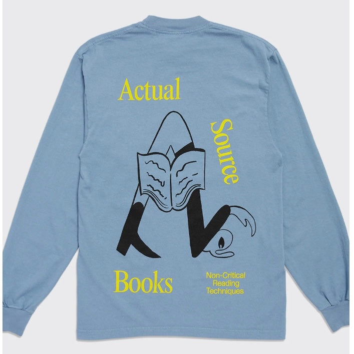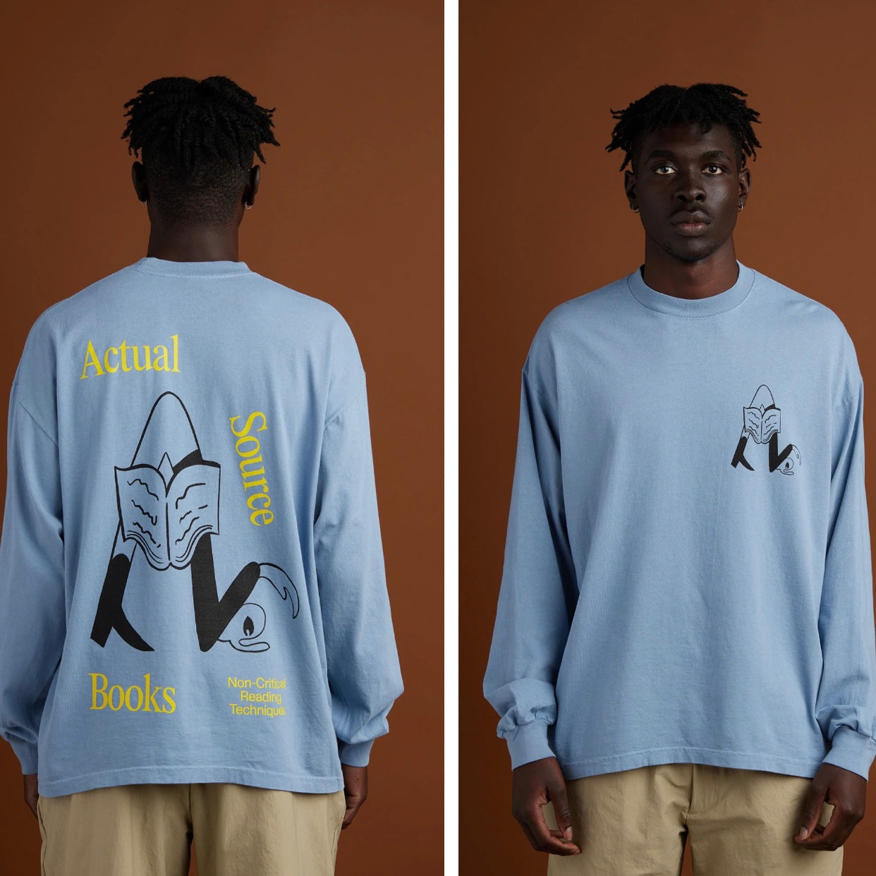 Chris LuxによるビジュアルをActual Sourceが料理したイエローの発色が鮮やかな"Reading Techniques" 長袖Tシャツ。