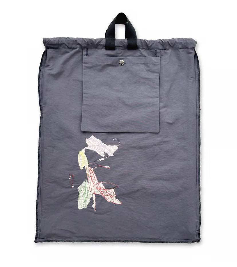 東京・幡ヶ谷のGallery Communeにて2022年1月に展示を開催したニューヨーク拠点のアーティスト Lina Sun Parkによる作品集 "A Mouse In Her House"リリースに因んだナイロンナップサック。