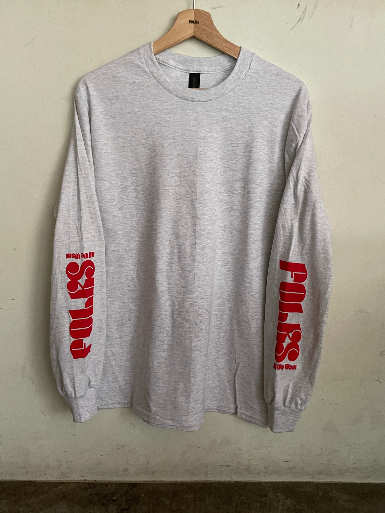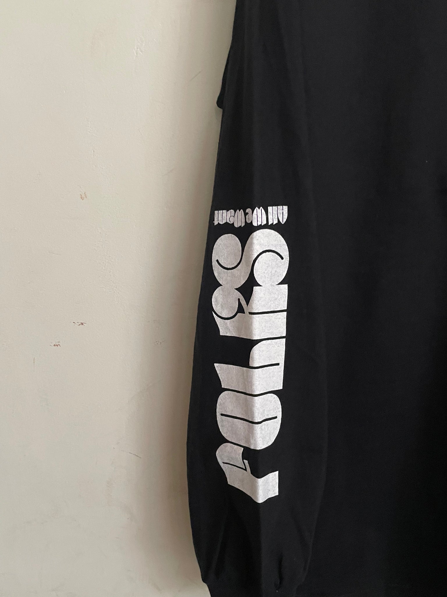「All We Want」欲しいものがいつでも揃っている、そんなお店になれるように、スケートブランドや、大好きな「〇〇〇〇day」のように袖口にプリントしました。