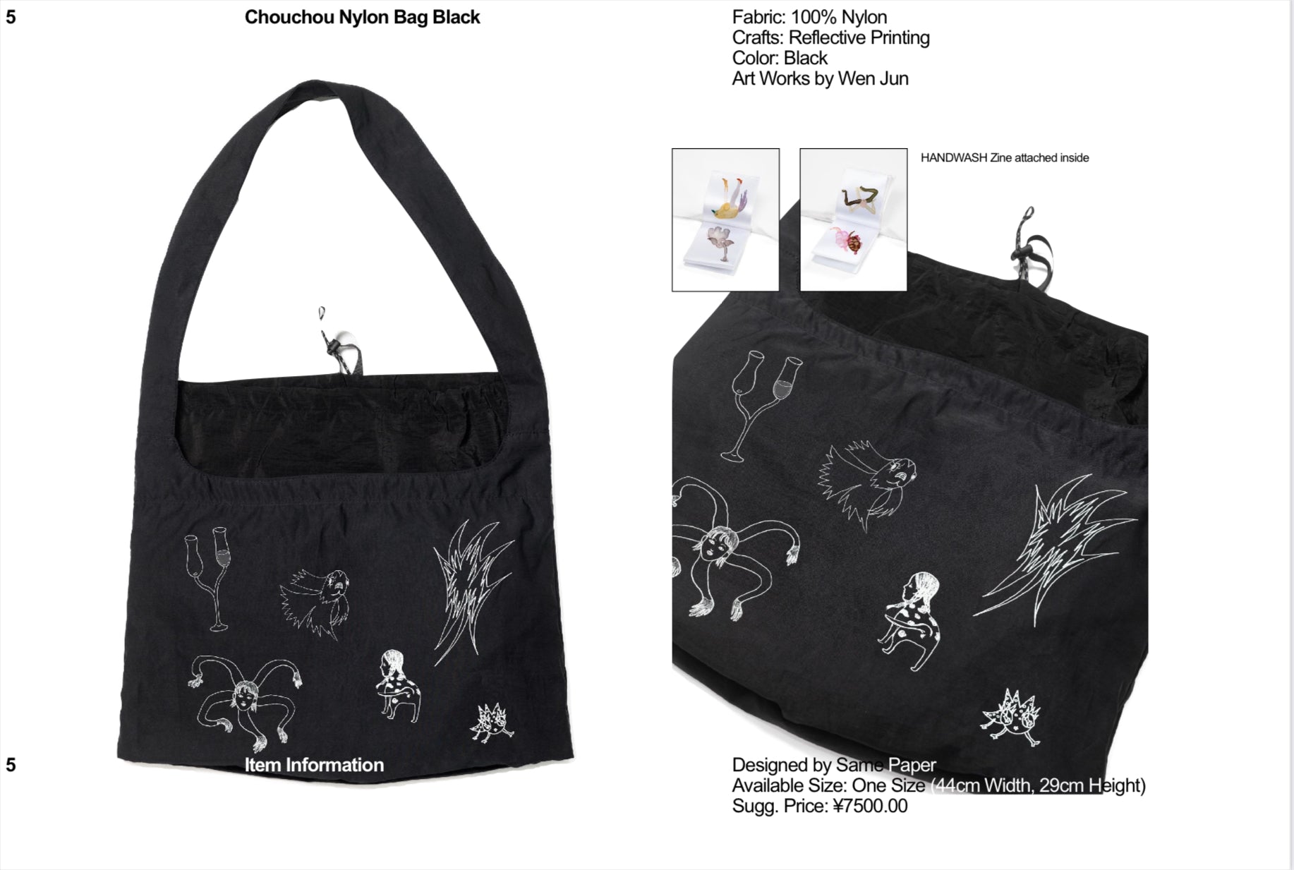 上海のクリエイティヴスタジオ Same Paperと上海拠点のアーティスト Wen Junによるカプセルコレクション。Same Paperの代名詞であるタグzineが付いたバッグです。